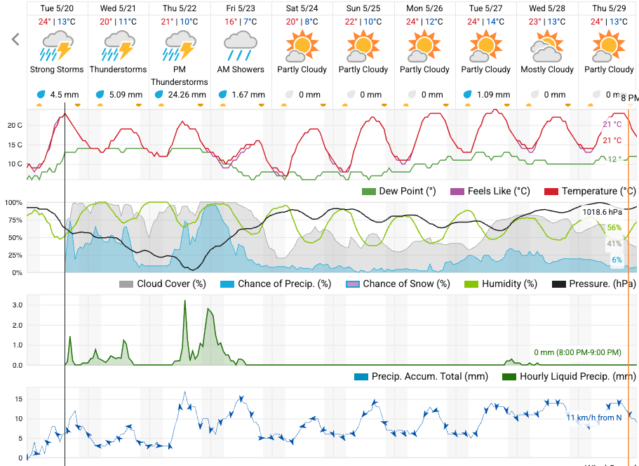 V četrtek bodo plohe in nevihte pogoste čez dan, z največ padavin v severni polovici države. Pihal bo jugozahodnik, ob morju zmeren jugo. V noči na petek nas bo zajela hladna fronta, ki bo prešla celotno državo. Dež se bo okrepil in vztrajal do petkovega jutra.