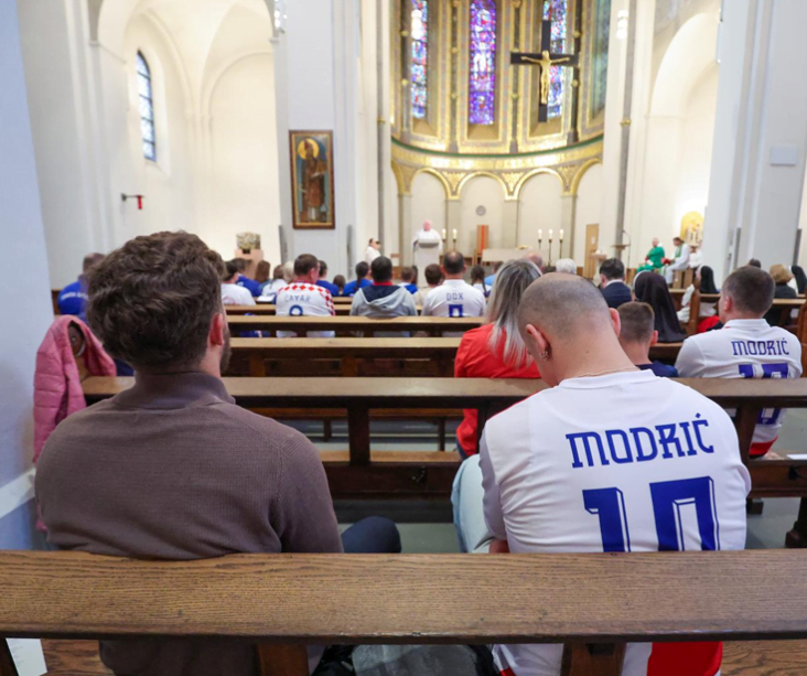 Hrvati in Albanci so se večer pred pomembno tekmo v Hamburgu skupaj udeležili maše v katedrali Am Mariendom – St. Mariend. Številni hrvaški navijači so v cerkev prišli v dresih, kar je še dodatno poudarilo njihovo povezanost in podporo.