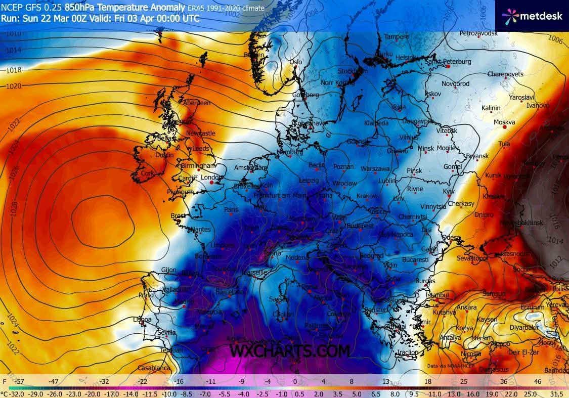 Po razmeroma mirnem in razmeroma toplem začetku tedna se nad severnim Sredozemljem razvija obsežen vremenski sistem, ki bo v drugi polovici tedna prinesel izrazit preobrat v Sloveniji. Nad nami se bo razvilo ciklonsko območje, ki bo prineslo večdnevno obdobje padavin, postopno občutno ohladitev in možnost neviht.