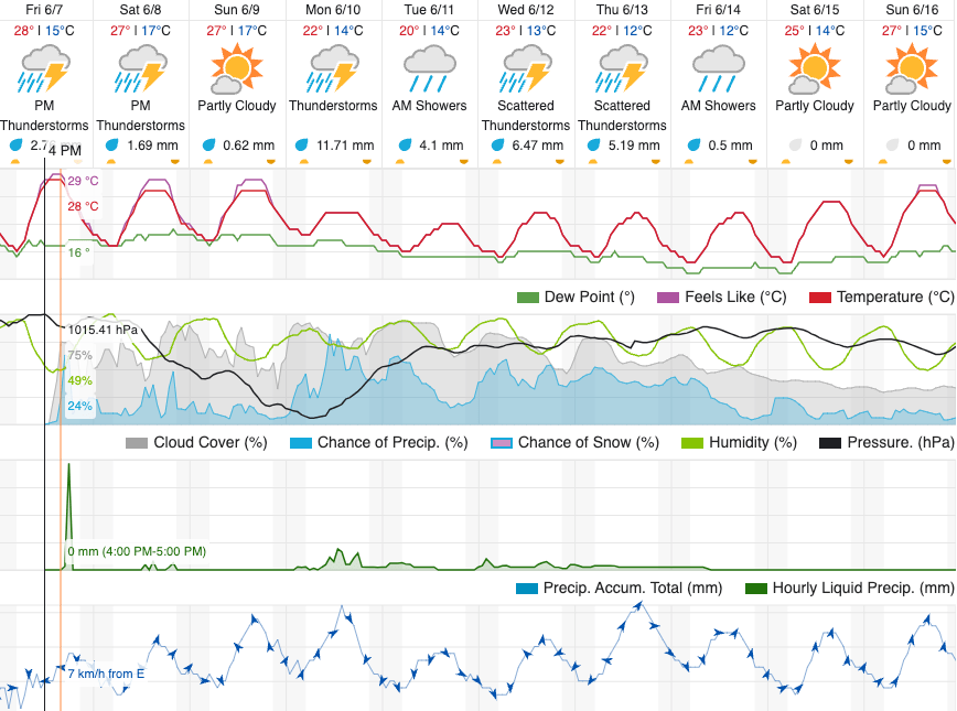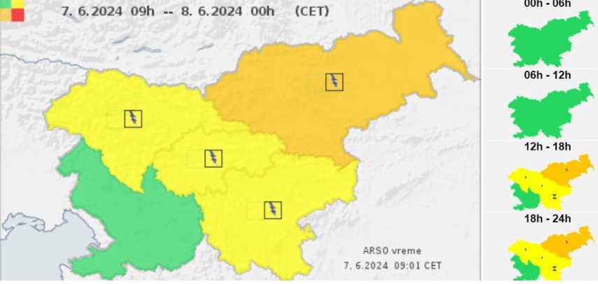 V poznem popoldnevu oz. večeru bodo te nevihte dosegle tudi severni in severovzhodni del Slovenije ter se pomikale v smeri proti jugovzhodu. Ob takih pogojih lahko nastane krajevno neurje z debelo točo, nevihte pa lahko ob močnem nalivu spremlja tudi nevihtni piš oz. veter.