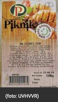 Uprava za varno hrano, veterinarstvo in varstvo rastlin (UVHVVR) je v okviru letnega programa vzorčenja odvzela vzorec piščančjega mesnega pripravka v prometu, v katerem je uradni laboratorij potrdil prisotnost bakterije Salmonella Enterica.