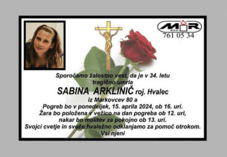 Prejšnji teden je Slovenijo pretresla vest o skrbno pripravljenem umoru 33-letne Sabine Arklinič. Osumljenca, njen mož Tomaž Arklinič in njegova ljubica Aleksandra Škamlec, so obtožili za to dejanje. Sabino bodo danes pokopali v Markovcih, ob 16. uri na pokopališču Videm pri Ptuju. Obred se bo začel ob 12. uri, ko bodo žaro položili v vežico, … Nadaljujte z branjem Sabino danes njeni peljejo na svojo zadnjo pot. Ljudje zahtevajo dosmrtno za moža in ljubico
