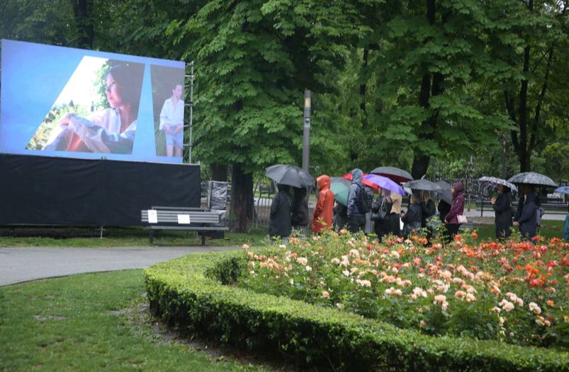 Na ekranu v parku so se predvajali diapozitivi s fotografijami otrok z opisi kot so »sreča« ali »čisto srce« za vsakega otroka posebej. Tiho je. Stojijo in nemo strmijo v diapozitive, ki so prikazani na ekranu. Po prižgani svečki pred šolo se ljudje odpravijo naprej proti Tašmajdanskemu parku.