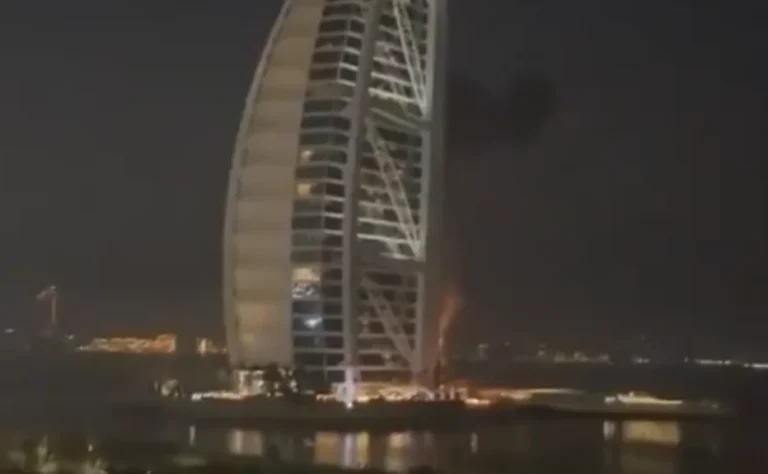 🚨 #BREAKING: Dubai’s iconic Burj Al Arab often called the world’s only seven-star hotel has reportedly been struck by an Iranian drone, with footage showing flames rising from the landmark property as emergency response teams rush to the scene.pic.twitter.com/Xj9q8XaL68