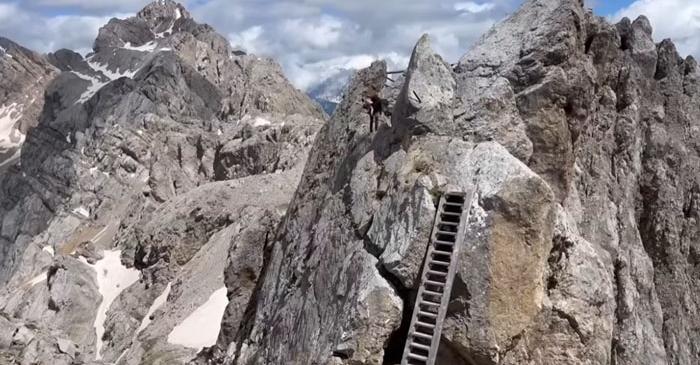 Oče se je z otrokom v naročju spuščal po strmih skalah, pri tem pa nihče od družine ni imel varnostne opreme. Starša sta z otrokom korakala po poti Via Ferrata v italijanskih Dolomitih brez zaščitne čelade, brez vrvi in brez plezalnih klinov.