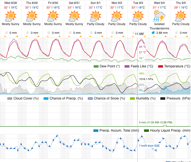 • Torek: Temperature bodo nekoliko znosnejše, večinoma pod 30 stopinj Celzija.