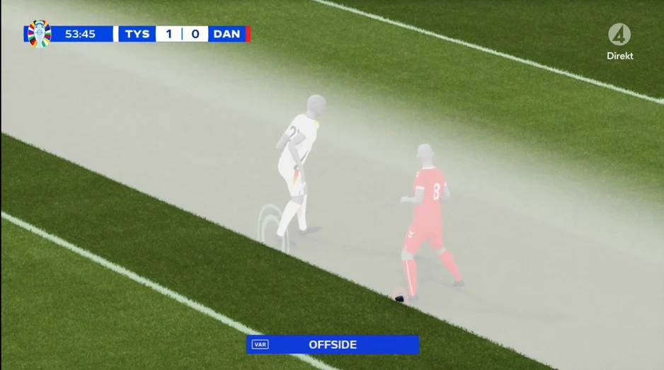 V 49. minuti so Danci zadeli za vodstvo, ko je branilec Joachim Andersen v slogu izkušenega napadalca premagal Manuela Neuerja po zmedi v kazenskem prostoru. Danci so proslavili gol, a sodnik Michael Oliver je po posvetovanju z VAR sodnikom Stuartom Atwellom razveljavil zadetek.