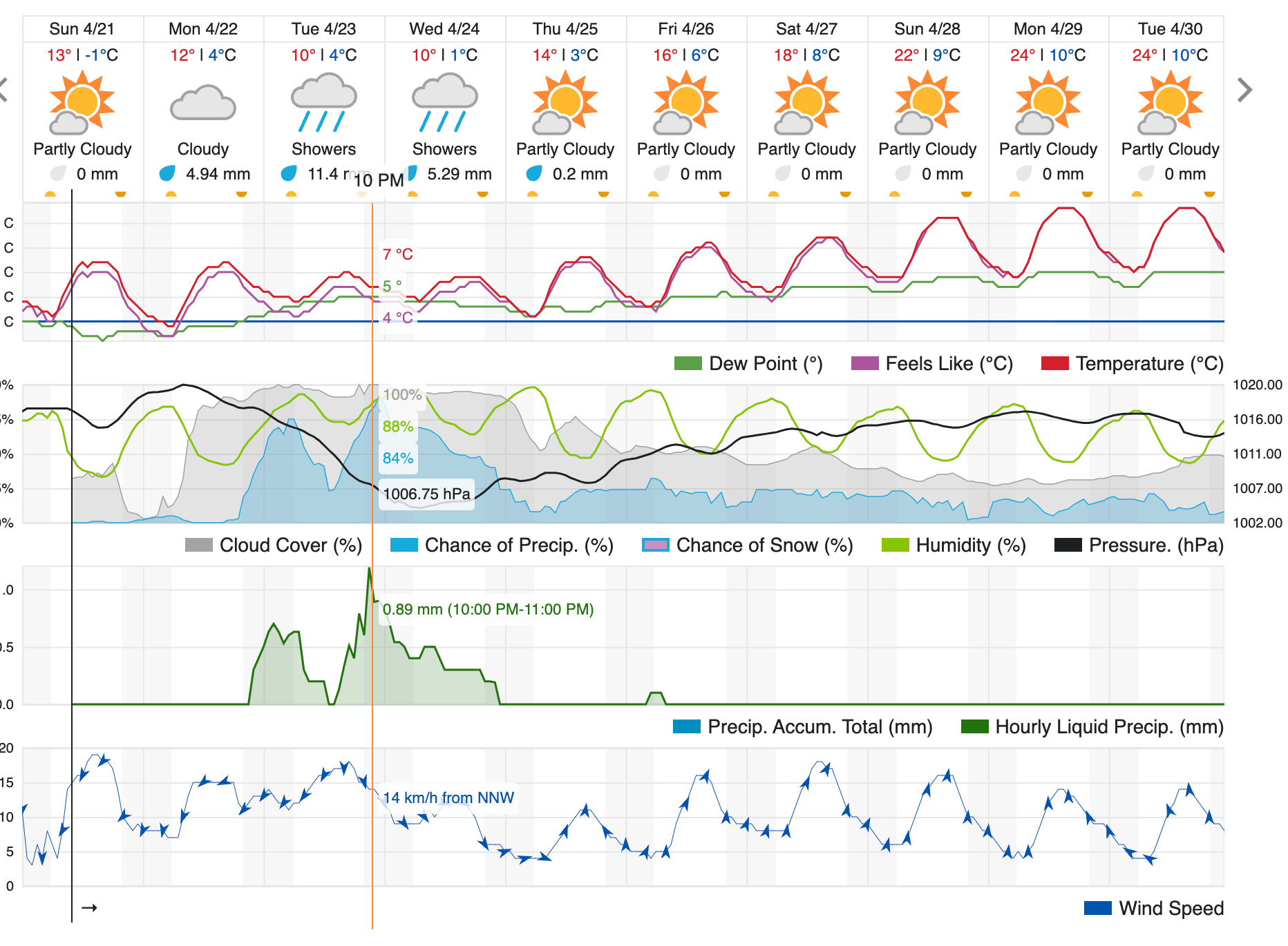 V sredo bo vreme ostalo oblačno, deževno in precej hladno z najvišjimi popoldanskimi temperaturami okoli 10 stopinj Celzija. Prijetnejše vreme nas čaka v drugi polovici tedna, ko bodo sončna obdobja daljša in temperature občutno višje.
